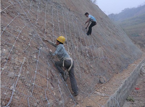 貴州邊坡防護(hù)網(wǎng)系統(tǒng)主要產(chǎn)品可分為主動防護(hù)網(wǎng)系統(tǒng)和被動防護(hù)網(wǎng)系統(tǒng)兩種:系統(tǒng)以鋼絲繩作為主要構(gòu)成部分并以覆蓋(主動防護(hù))和攔截(被動防護(hù))兩大基本類型來防治各類斜坡坡面地質(zhì)災(zāi)害和雪崩、岸坡沖刷、爆破飛石、墜物等危害的柔性安全防護(hù)系統(tǒng)技術(shù)和產(chǎn)品。 被動防護(hù)系統(tǒng)是由鋼絲繩網(wǎng)、高強(qiáng)度鐵絲格柵網(wǎng)、錨桿、工字鋼柱、上下拉錨繩、消能環(huán)、底座及上下支撐繩等部件構(gòu)成。系統(tǒng)由鋼柱和鋼繩網(wǎng)聯(lián)結(jié)組合構(gòu)成一個整體,對所防護(hù)的區(qū)域形成坡面防護(hù),從而阻止崩塌巖石的下墜,起到邊坡防護(hù)的作用。